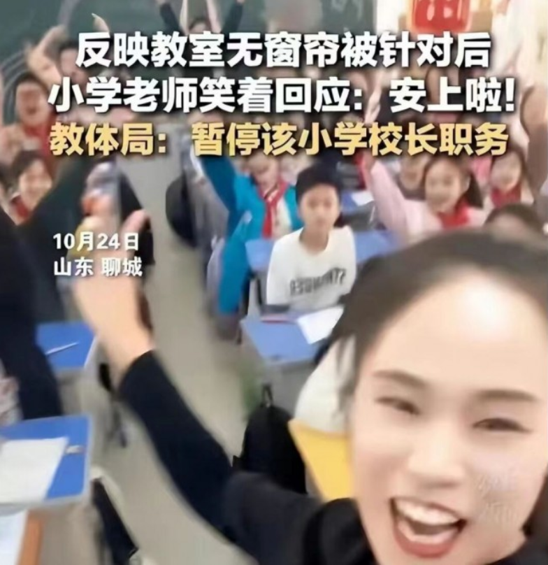 近日,#山东聊城一老师反映教室无窗帘被约谈#一事在社交媒体上引起了广泛关注。随后,聊城市东昌府区教育局发布《情况说明》,称窗帘将于11月15日前全部安装完毕,同时将暂停文苑小学校长职务。