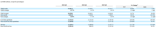 极氪汽车的日子也不好过,2021-2023年累亏超200亿元,今年前三季度累计净亏损高达49.7亿元。其中,第三季度实现营收183.58亿元,同比增长30.7%,环比下滑8.4%;同期净亏损11.39亿元,同比减亏21.7%,环比减亏37%。