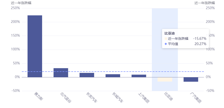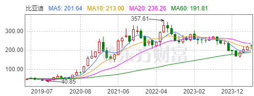 自2022年6月盘中创出357.61元的历史新高后,比亚迪股价就与其业绩严重背离,基本上一直处于下降通道。