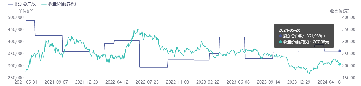 截止2024年一季报,比亚迪股东总户数为361939户,比前一期减少25484户;比一年前减少58039户。