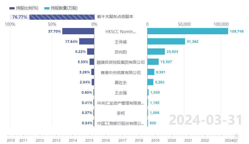 从股东结构看,公司前十大股东占总股本比例达到76.77%。