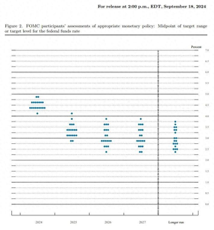 而且美联储发布的点阵图显示,年底前,有可能继续再降息50个基点。