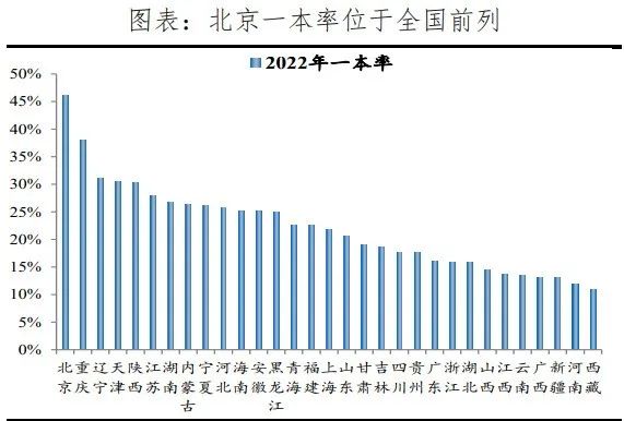 2、核心城市优质公共资源高度密集,户籍制度使得公共资源与户口挂钩、户口基本与房产挂钩的情况更加促进高收入人群集聚。从教育看,2022年北京、上海一本率分别为46%、22%,分别为全国第一、第十六;985大学数量分别为8所、4所,合计占全国的31%;211大学数量分别为23所、10所,合计占全国的29%。