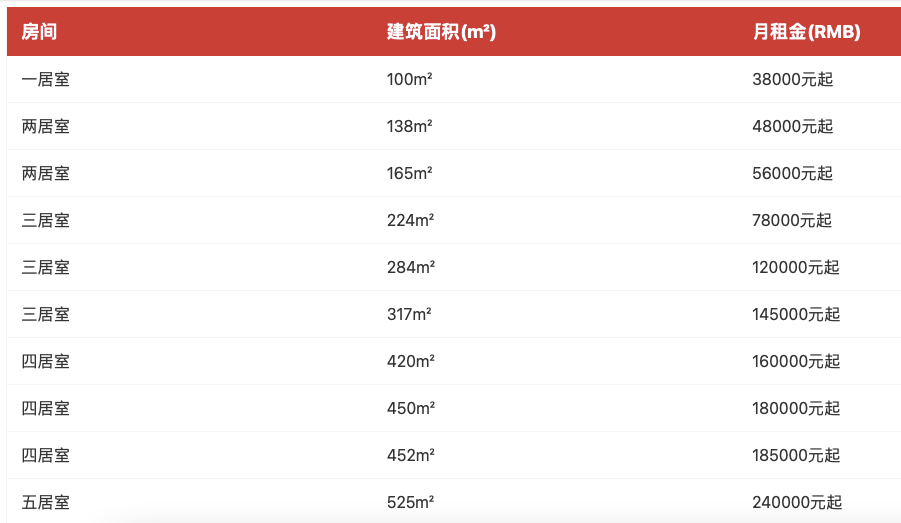 核心区国贸CBD的嘉里公寓至今已运营10年,项目共192套房,100~525㎡一居室~四居室产品,租金最高可达24万/月,租赁需求不断,主力户型甚至到需要排队的程度。