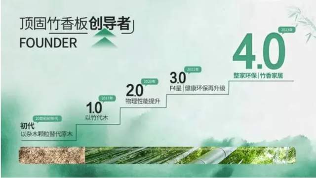 时至今日,顶固整家定制的竹香板家居已经升级到4.0版,形成以纯竹材、纯竹香、纯抗菌、纯净醛、纯呼吸、MDI生态胶为核心,为消费者提供全空间、全品类、24hx360°的整体环保家居定制的解决方案。