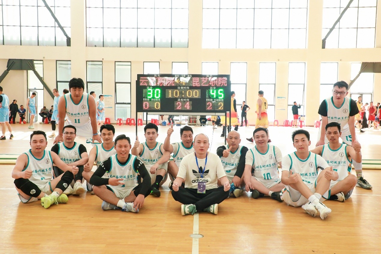 本次球类运动会旨在丰富教职工的文化生活,营造团结拼搏的积极氛围,进一步提升教职工的身体素质和团队协作精神。昆明艺术职业学院工会积极响应号召,精心组织、认真备战,选派了一支实力强劲的篮球代表队参赛。经过多轮紧张激烈的角逐,队员们凭借着精湛的球技、默契的配合以及顽强的拼搏精神,最终在高职高专组男子篮球赛事中脱颖而出,取得了第四名的优异成绩。
