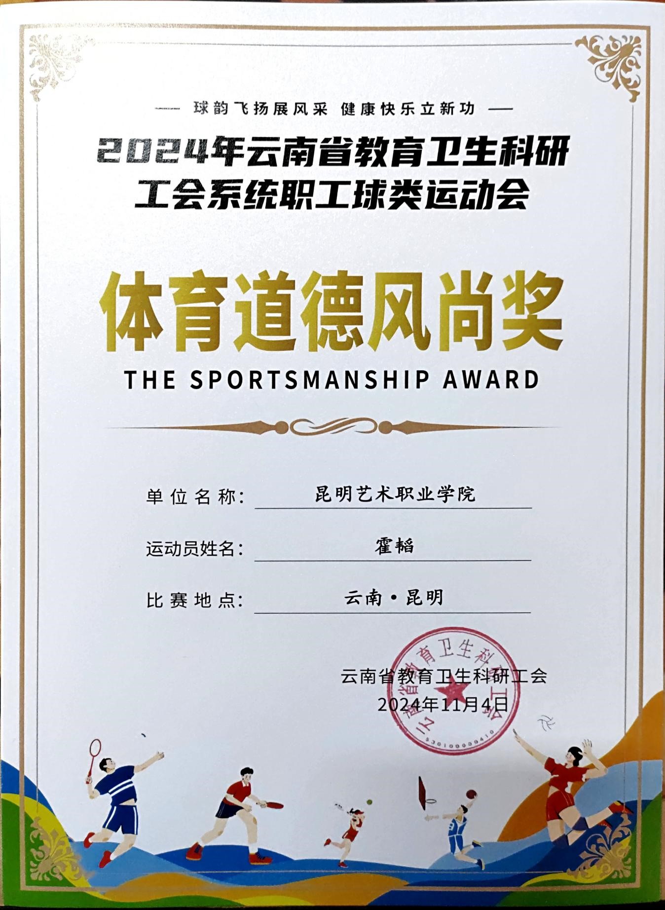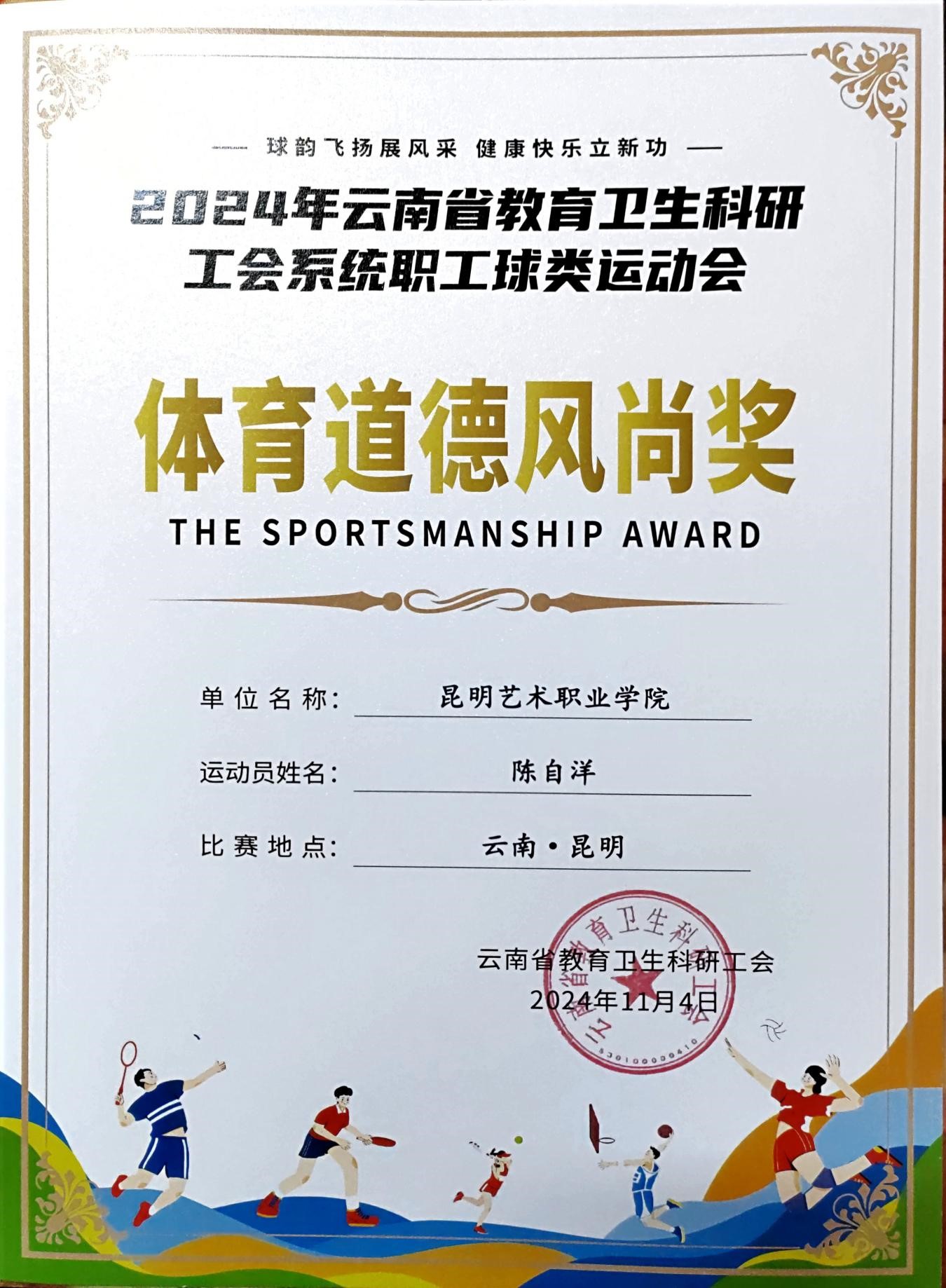 值得一提的是,昆明艺术职业学院工会的篮球队员霍韬、陈自洋在本次比赛中表现尤为突出,不仅为球队的胜利立下了汗马功劳,还凭借良好的体育道德风尚获得了表彰。他们的出色表现不仅为学校赢得了荣誉,也为广大教职工树立了榜样。