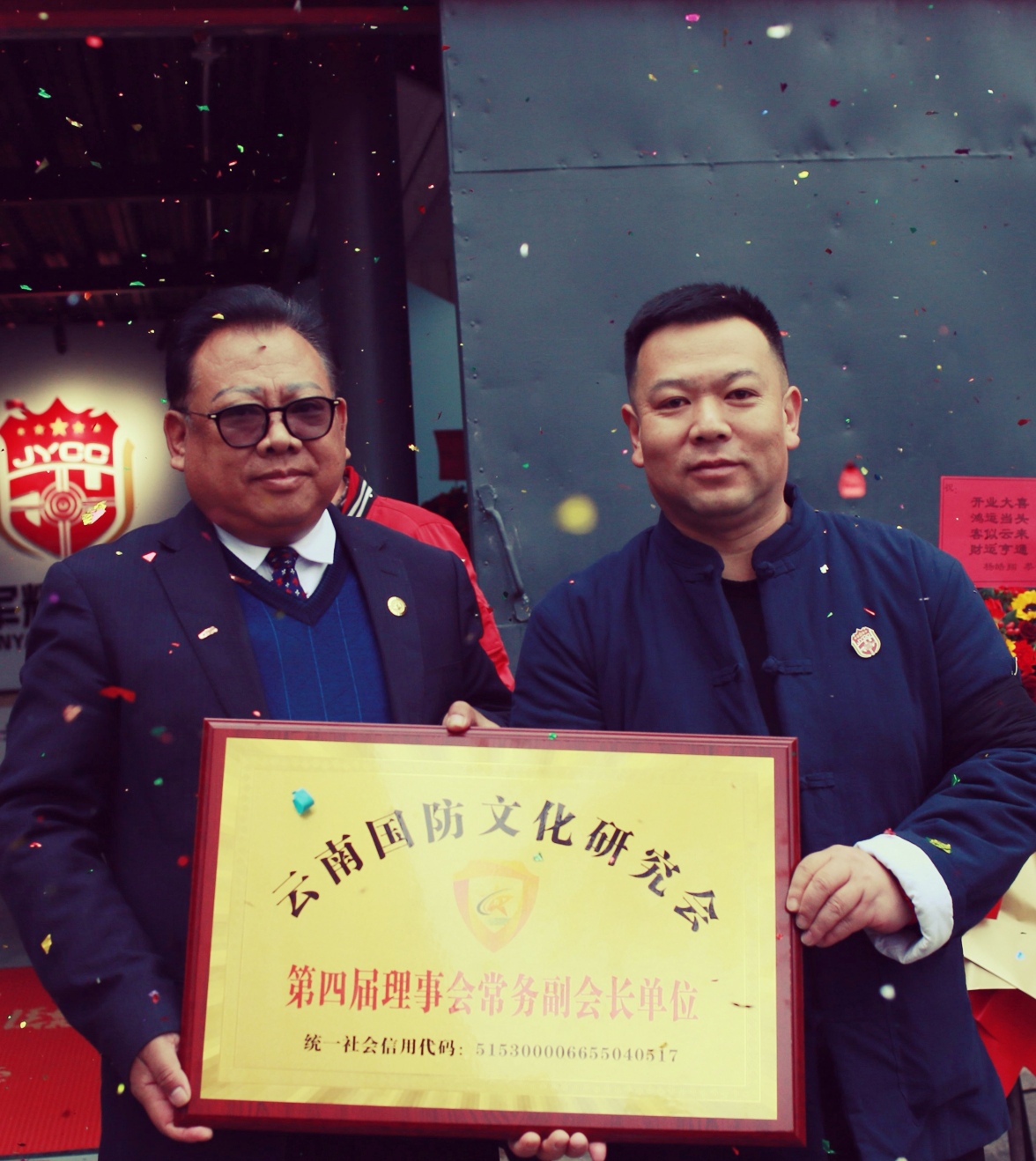 仪式上,赵会长还向云南军耀赤诚体育文化传播有限公司董事长邵舰军颁授了“云南国防文化研究会常务副会长”和“云南国防文化研究会爱党爱国红色文化研学实践基地”的牌匾,以表彰其在国防教育事业中的杰出贡献。