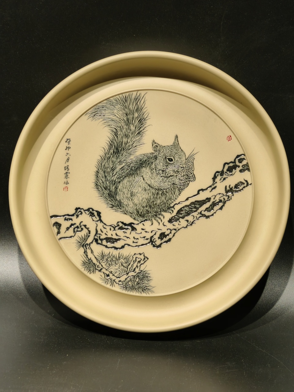 兰石磊携带得意之作参展,如《陶绣技法松鼠赏盘》等。这些作品不仅展示了他深厚的艺术功底,还体现了他在陶瓷艺术领域的独特见解和创新精神。凭借独特的创意、精湛的工艺和深厚的文化内涵,他的作品赢得了多位权威专家和评委的高度赞誉,最终摘得本次大赛唯一的“特等奖”。