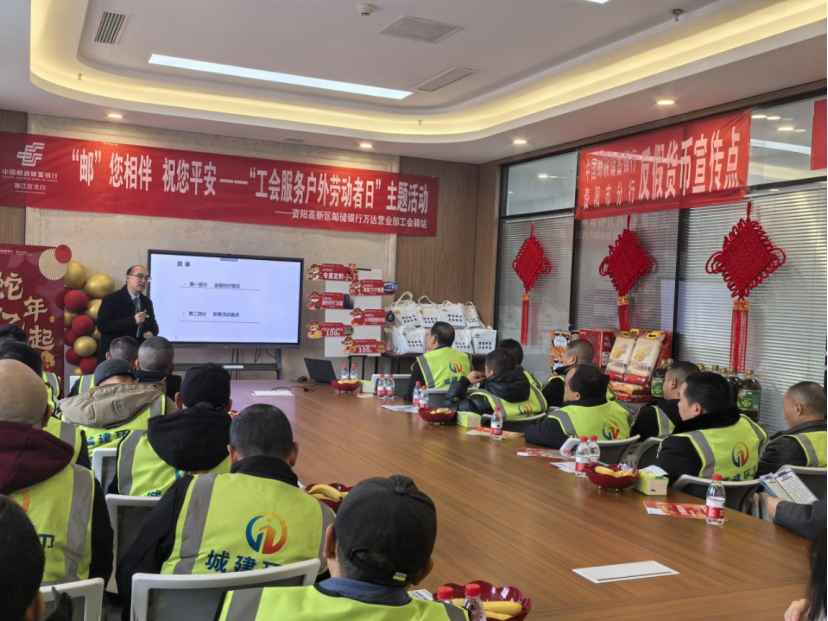 1月15日是一年一度的户外劳动者日,当天,邮储银行资阳分行在资阳市雁江区支行万达营业部工会驿站开展了“‘邮’您相伴,祝您平安——‘工会服务户外劳动者日’”主题活动,在新春佳节来临之际,为户外劳动者们送上关怀和温暖。