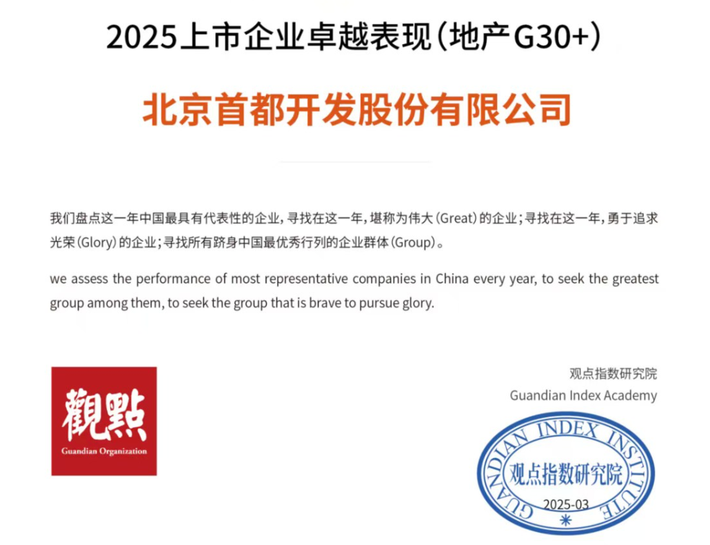 这份殊荣,既是对首开股份过往璀璨的加冕,也是对未来征途的鼓励。