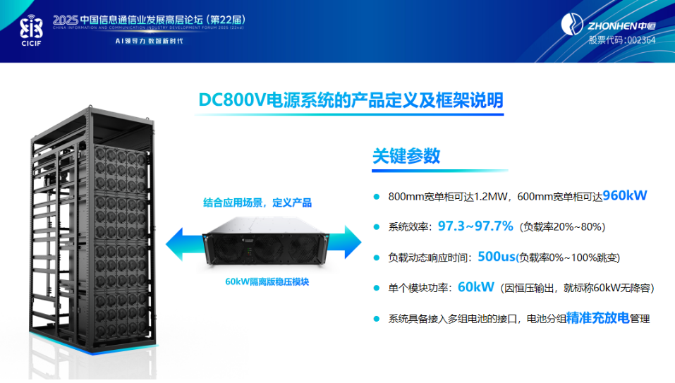 在2025中国信息通信业发展高层论坛上,杭州中恒电气股份有限公司IDC事业部总经理李善策先生发表了题为“AIDC直流800V产品定义与探讨”的精彩演讲,为与会者呈现了数据中心电源系统在人工智能时代的新发展与新机遇。