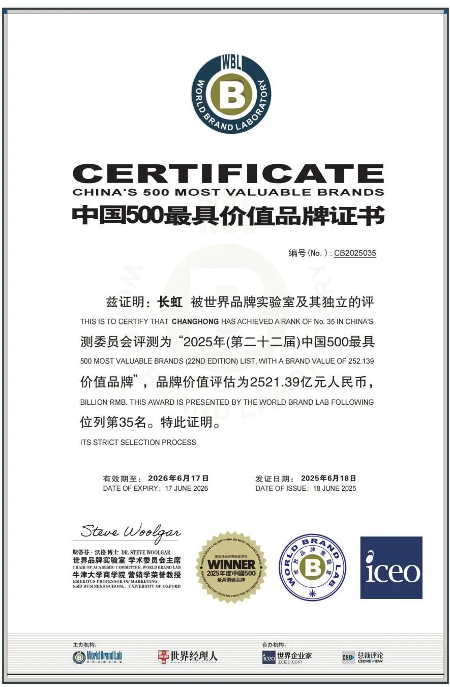 这既是“科技长虹 产业报国”持续创新的品牌印证,更彰显长虹坚持科技创新和产业创新融合发展的品牌成就。