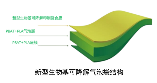 这一重要里程碑不仅验证了BOPLA材料在快递包装领域的优异性能,也为气泡袋研发奠定了合作基础。双方团队再次携手,针对材料性能与成本难题,开发出气泡袋专用新型生物基可降解印刷复合膜材,在工艺、设备适配及成本控制上取得一系列关键突破。