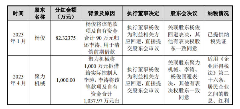 值得注意的是,2023年酉立智能曾有两次定向分红,分别在1月与4月,金额分别为82.32万元、1000万元,定向分红款项主要用于股东归还借款/资金占用款,即主要用于解决股东债务问题。