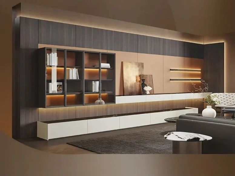 设计特点:天然木皮营造自然平静的空间氛围,天然木皮营造自然平静的空间氛围;大地系列门型采用建筑设计语言、几何线条设计;升级高定柜体工艺,定制门墙系统雕琢高定品味。