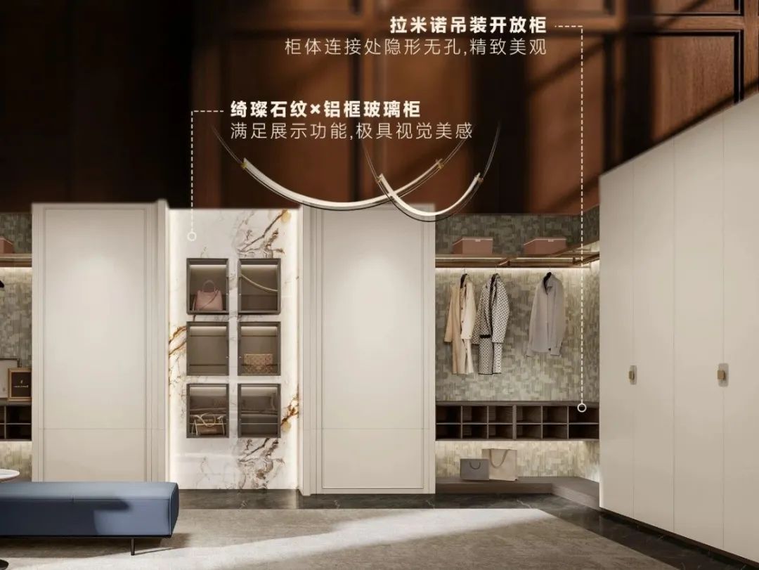 设计特点:以江南为灵感,文化跨界为底色,低饱和套系化色系与高质感材质对话,重构柔雅克制的东方美学语言,诠释无界生活的自由意境。
