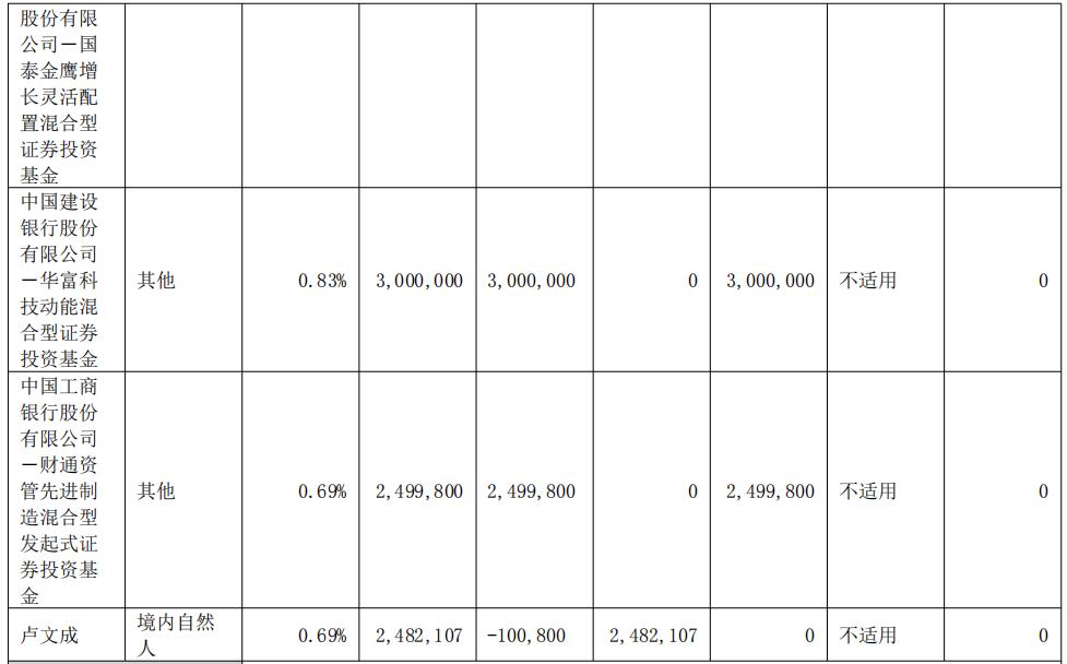 中国建设银行股份有限公司一华富科技动能混合型证券投资基金持股比例0.83%,报告期末持股数量3,000,000股;