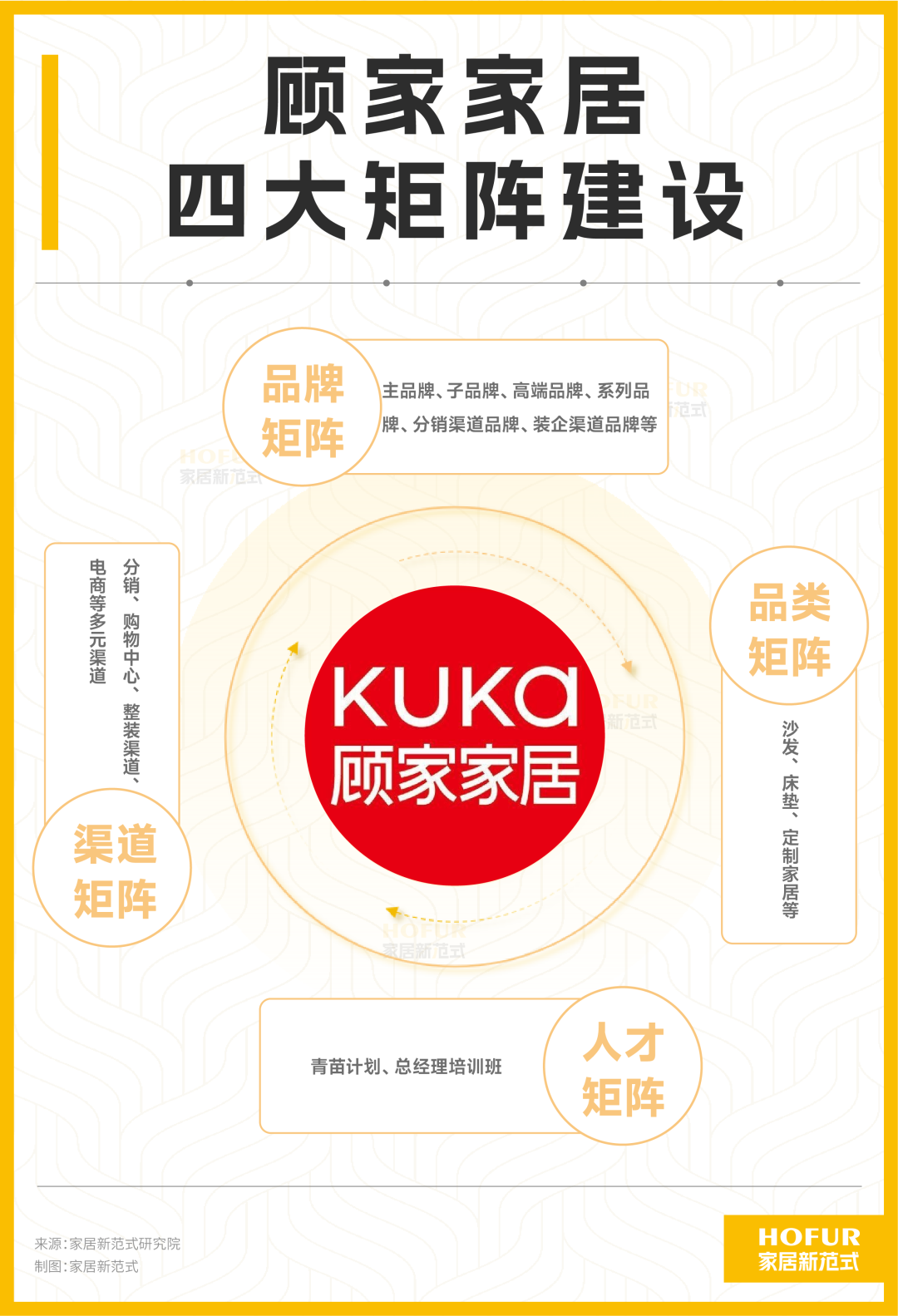 在家居新范式看来,品牌矩阵,解决定位认知问题;品类矩阵,解决场景体验问题;渠道矩阵,解决精准触达问题;人才矩阵,解决组织管理问题。顾家家居搭建的四大矩阵,相当于在穿越产业周期中面对可能遭遇到的各种困境,已全面武装,做好了相当周密的布局。