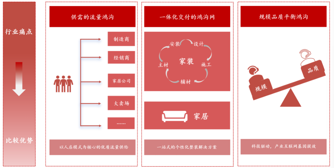从房地产制造业、房地产交易服务、家居到家装,这每个行业的头部、中腰部企业都具备四大优势中的一到两个。在行业处于高速发展的周期里,它们具备其中一到两个优势,就可以活得很不错。而在今天,像贝壳这样的企业,不断随着行业的变化,所形成的综合优势,才让其有资格打赢增长这场仗。