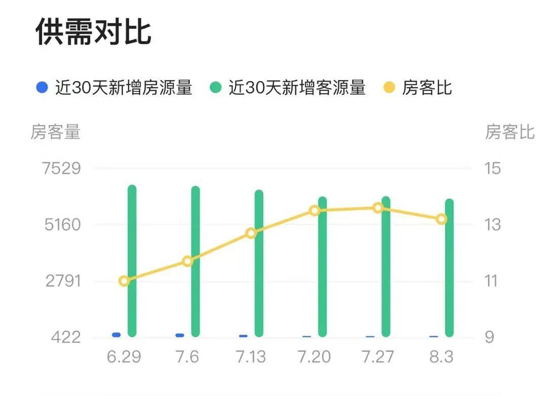 二手房方面,需求量远超供应量,根据贝壳二手房8月最新数据,大面房客比高达13.2,也就是单日6262组客户竞争仅有的475套挂牌房源,二手房源的紧俏程度,甚至超过华阳板块。其中,150-200万总价的改善房源为交易主流,达到32%。