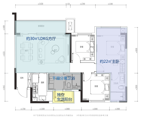 产品方面,建面约114㎡的三室户型,作为改善型居住的优选,横厅设计,客厅面宽达5.9米,搭配同尺寸的景观阳台,几乎是大平层方厅的即视感。加上主卧双套间、洗浴分离的特点,实用又舒适,堪称114㎡面积段最卷的户型。
