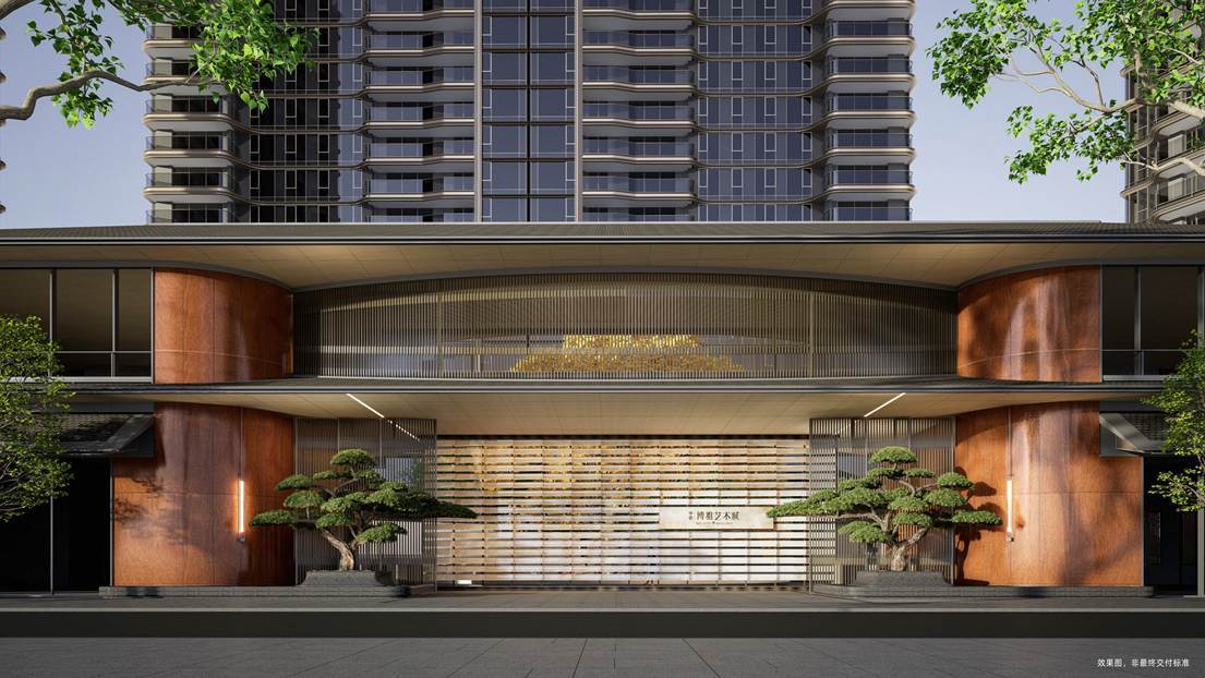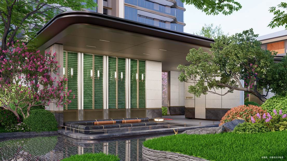 项目选材兼具匠心与寓意:特选罗汉松、乌桕林、红果冬青等珍稀苗木,搭配保加利亚沉香米黄、巴西铂金钻奢石等进口石材,通过竹韵织地、金叶织脉等细节,实现“内敛文脉・外放活力”。