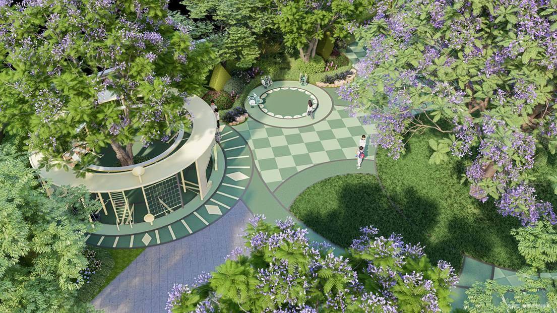 园林内更植入森林圆舞曲儿童乐园、鎏光月台社交场等功能空间,让自然与生活深度交融。