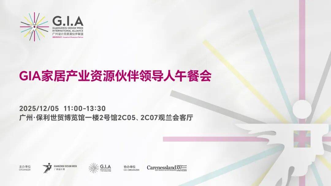 12月5日,GIA家居产业资源伙伴领导人午餐会将于广州·保利世贸博览馆一楼2号馆2C05、2C07观兰会客厅举行,定向邀请20位家居产业领导人、品牌创始人和行业领袖亲临现场,开启一场高阶闭门产业对话。活动将通过宏观政策导向、中观行业风向、微观企业实践的叙事逻辑层层深入,共同探讨设计如何为产业注入新动能、创造新质生产力。