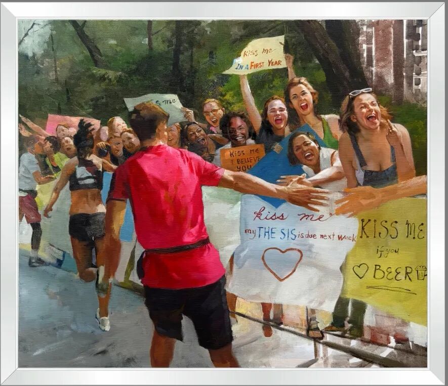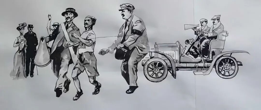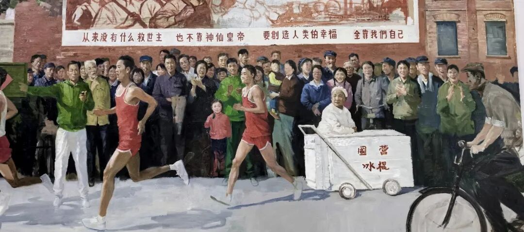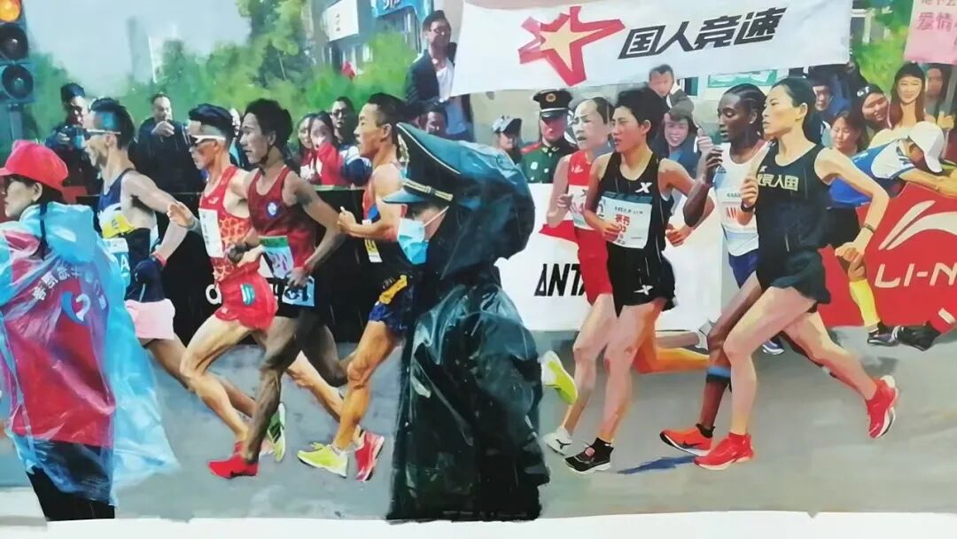 随后的几年里,陈老师的生活方式发生了改变,每天清晨陈老师以奔跑的方式开启创作的热身,为了追寻马拉松运动的源头,他奔赴雅典马拉松小镇,去观摩马拉松博物馆里那些改变历史的步伐……在构思创作《中国马拉松》长卷前,他投身到北京中国体育博物馆里查看数万张中国马拉松赛事的珍贵影像……他的画笔仿佛被赋予了生命,他笔下的人物充满张力,无论是摆臂的角度、肌肉的线条,还是冲刺时的面部微表情,都精准地捕捉到了奔跑的灵魂。