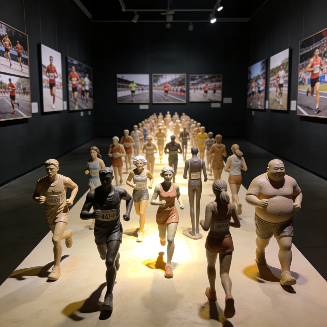 在厦门马拉松博览会上,我们看到的仅仅是《中国马拉松》42米长卷中的一个组成部分,还有马拉松运动的始祖——2500年前波希战争的传令兵菲迪彼斯,以及几十幅世界各地马拉松主题的油画作品和中外马拉松名人雕塑尚未完全展现。这些作品,不仅是艺术的瑰宝,更是马拉松精神的生动诠释。