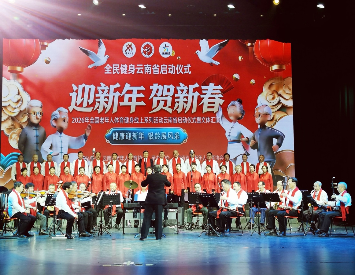 1月14日,云南省文化馆内张灯结彩、欢声洋溢,“迎新年·贺新春”2026年全国老年人体育健身线上系列活动云南省启动仪式暨文体汇演在此隆重举行。活动以“线下启动+线上联动+精品展演”的创新模式,生动呈现了新时代老年人老有所为、老有所乐的精神风貌,也为新春佳节增添了绚丽一笔。