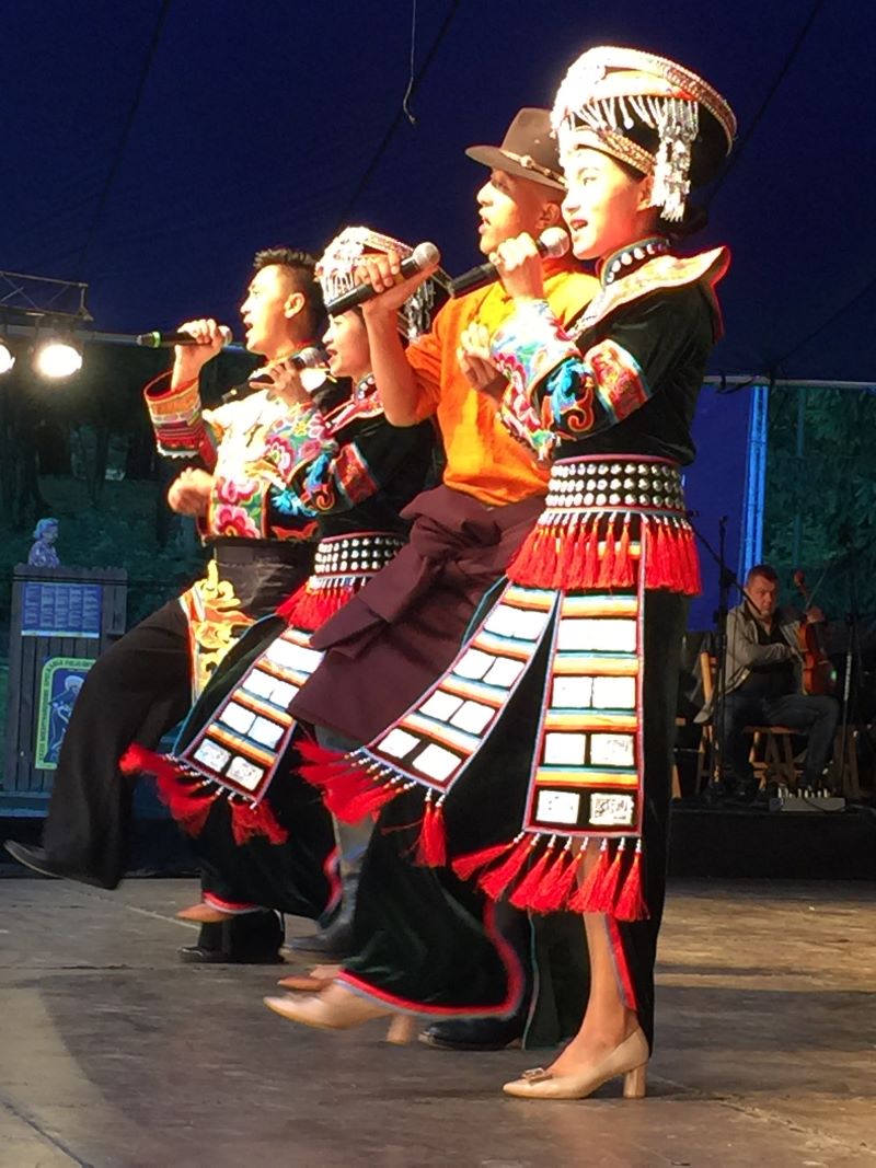 晚会中“民乐无国界”篇章尤为引人注目。金小凤艺术团呈现了傣族、景颇族、彝族等原生态歌舞,演出阵容强大:景颇族歌唱家岳木果、被外媒誉为“最具个性魅力的中国歌者”的彝族歌唱家高洪章、荣获全国青歌赛原生态组银奖的非遗传承人李娅洁、声乐金钟奖得主藏族青年歌唱家格桑顿珠、国家二级演员傣剧传承人金小摆、国家一级演奏员白族胡琴演奏家尹毅等齐聚舞台。他们以纯真的歌声与灵动的舞姿,展现云南各民族丰富多彩的文化生活,令观众仿佛置身云南的青山绿水之间,感受扑面而来的热情与活力。
