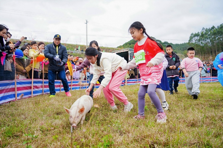 “小猪特别调皮,跑得飞快,追起来特别过瘾。”南宁游客陈先生抱着抓到的小猪笑得合不拢嘴。游客苏婷说,“特别有过年的氛围,仿佛又回到了小时候赶年圩的日子!”