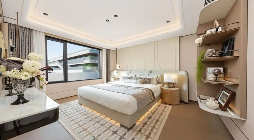 约10㎡的独立入户光厅可自由定义任意场景功能,约7米面宽的超大方厅,提供了近乎奢侈的社交与家庭活动空间。约32㎡的“主卧小家化”套房,整合了休憩、洗漱、收纳乃至阅读功能,营造出一个完全私属、高品质的庇护所。
