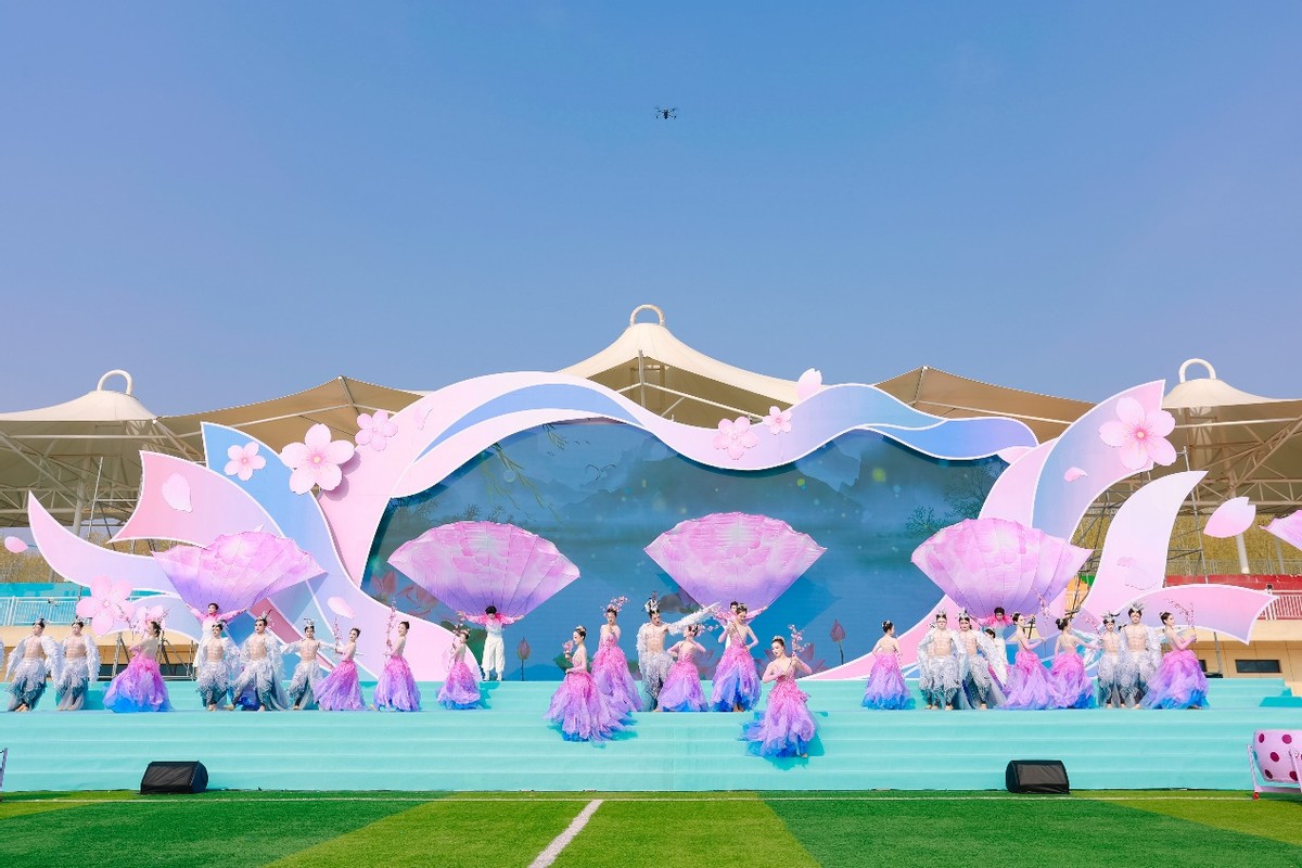 开幕式现场,一场融合古今的文化盛宴徐徐展开,成为诗经文化与樱花美景交融的最佳诠释。开场视频以“十有向新 美丽鹤壁”为主题,将淇河春色、樱花盛景与城市发展相融,勾勒出鹤壁建设“十有”内涵北方美丽城市的生动图景。舞蹈《樱动鹤壁》中,樱花仙子与仙鹤少年翩跹起舞,呈现鹤舞樱飞的唯美画面……