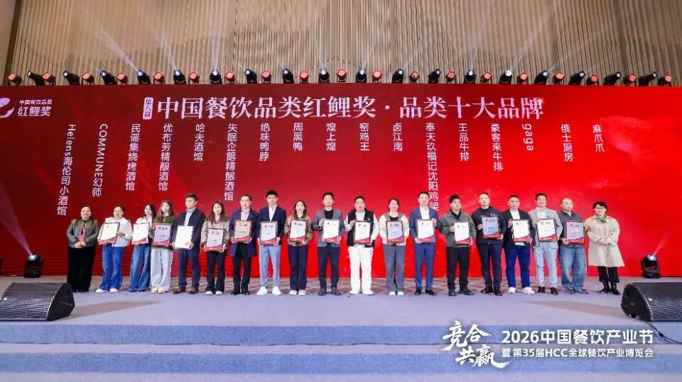 3月24日至26日,“竞合·共赢”2026中国餐饮产业节暨第35届HCC全球餐饮产业博览会在杭州大会展中心举行。在备受瞩目的颁奖盛典上,“第八届中国餐饮品类红鲤奖”评选结果正式揭晓,煌上煌凭借卓越的综合实力从众多参选品牌中脱颖而出,荣膺“2026年度卤味十大品牌”。