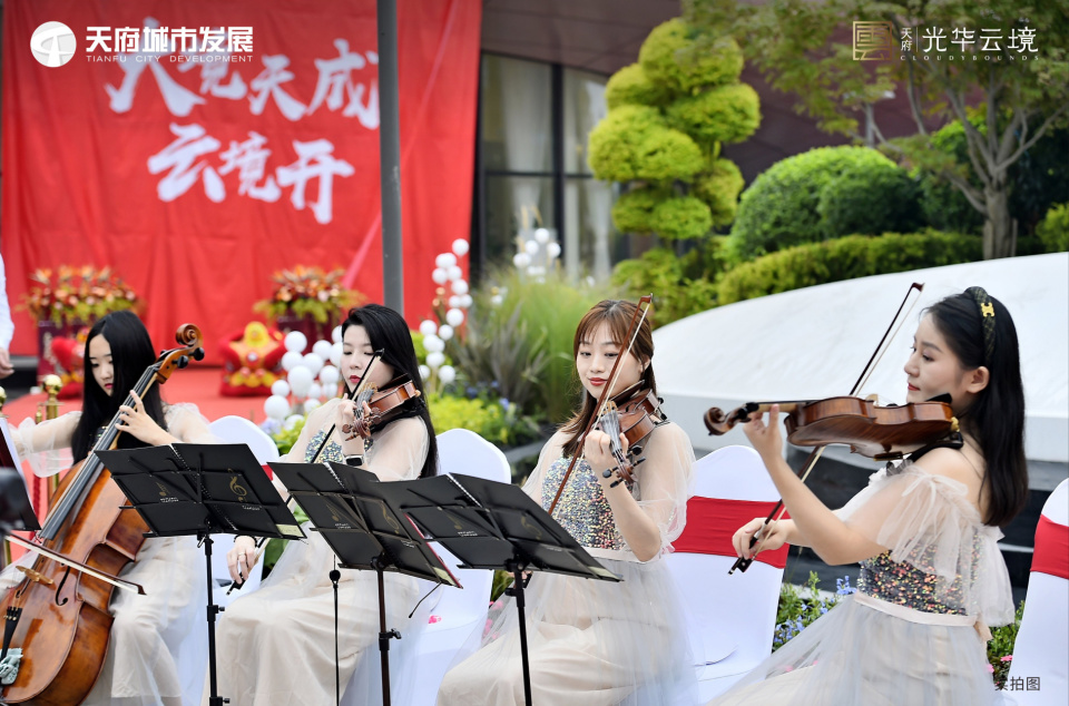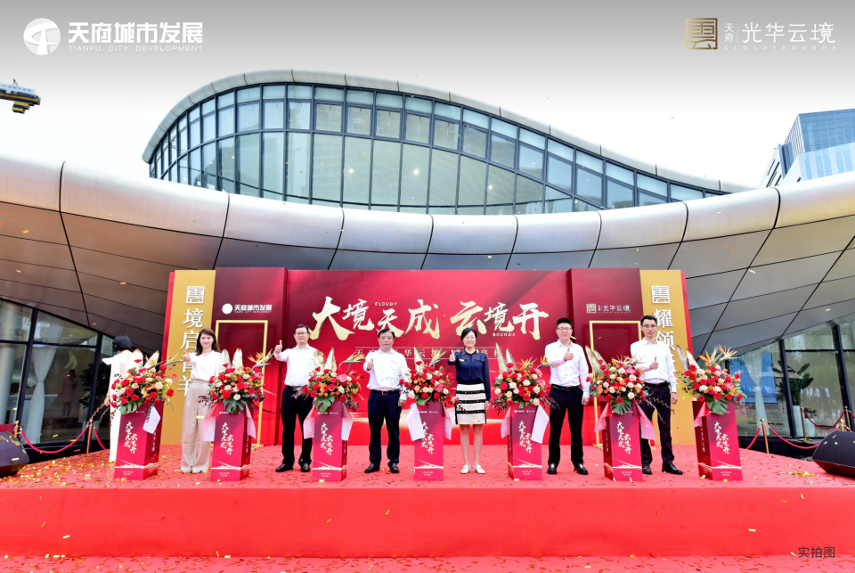 上午9时30分,成都天府城市发展有限公司总经理杨兵,成都天府城市发展有限公司副总经理李静,成都市汇鑫聚力企业管理有限公司执行董事、总经理郭江文,成都兴光怡居置业有限公司副总经理袁家佳,成都光华同泰科技服务有限公司副总经理毛蓓,绿舟商务公司总经理助理杜青山等领导,以及成都市众多媒体记者、宾客齐聚于此,共同见证城市级藏品——天府•光华云境的璀璨登场。
