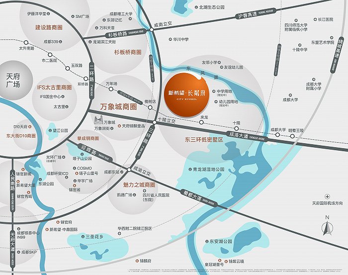 新希望·长粼府落子主城东三环,擎造一座主城难得低密墅院。地铁4号线来龙站直线距离仅约400米,3站即可抵达万象城,同时串联杉板桥、攀成钢与建设路商圈。近青龙湖公园,背倚东风渠滨河公园,享受主城难得生态绿肺资源。