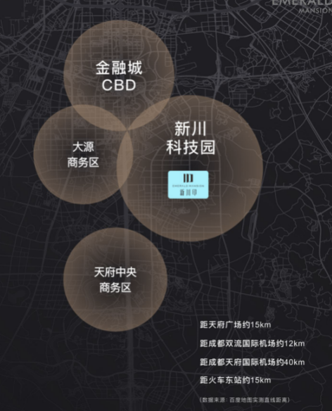 它与865亩中央公园——新川之心直线距离仅约400米(由百度地图测距),是离新川生态核最近的在售新盘;被三个公园环抱,宜居天赋肉眼可见;一街之隔,就是爱奇艺、超图、中通通服三大高能级产业。