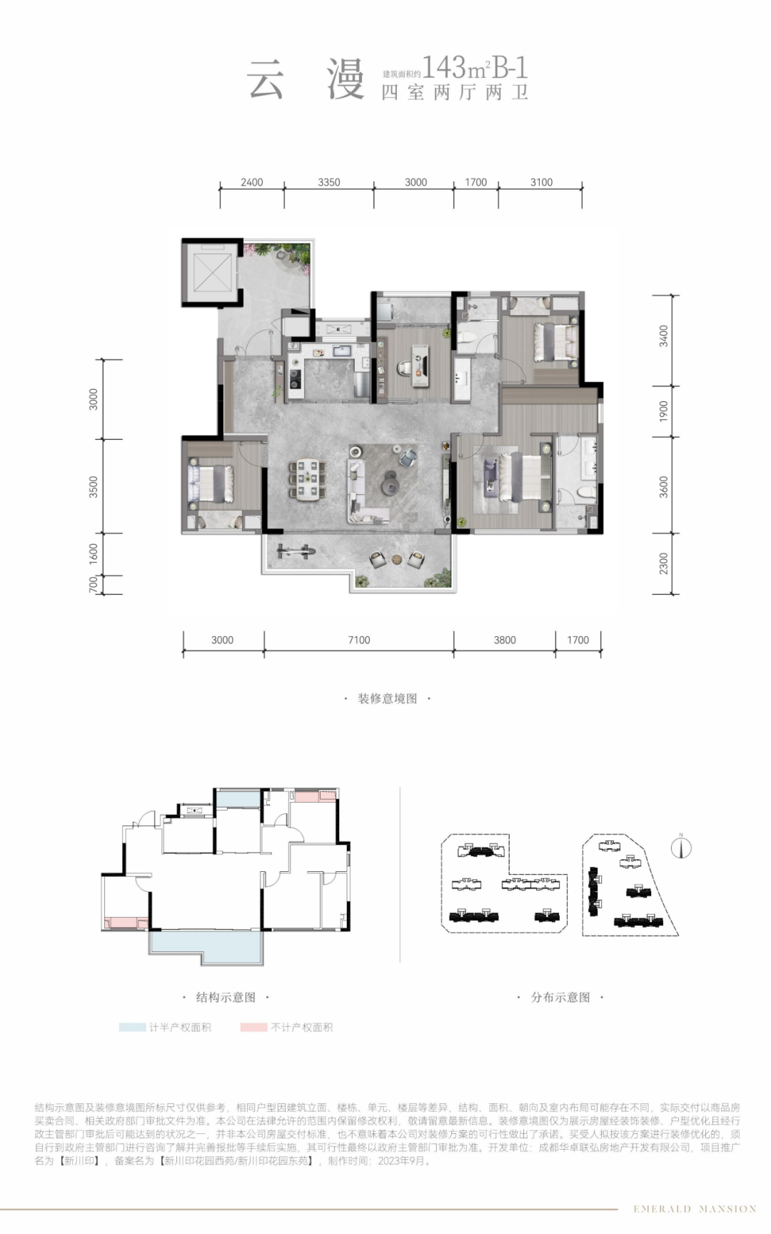 具体到新川印的三款户型,适配了不同深度改善家庭的多重选择,项目清水最高均价为31500元/㎡,精装约2950元/㎡,其中建面约120㎡户型总价在380万左右、建面约143㎡户型总价480万起、建面约175㎡户型总价620万起。