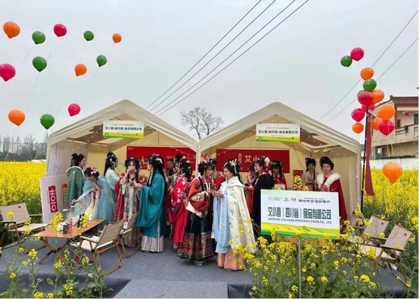 崇州天府酒村集市开市现场,艾小喜产品受热捧