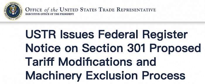 此外,USTR还称,“建议对从中国进口的数百种工业机械类产品免征关税,包括太阳能产品制造设备”,USTR将在另一份通知中提供有关企业如何申请机械设备关税豁免的细节,对中国商品新关税的豁免将持续到2025年5月31日。