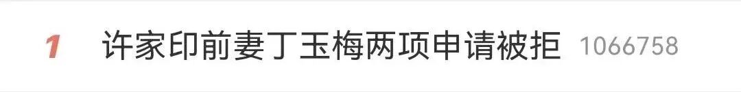 更早之前,2025年3月,#许家印前妻丁玉梅两项申请被拒#和#许家印还有两名未成年子女#分别登上微博和百度热搜榜第一。