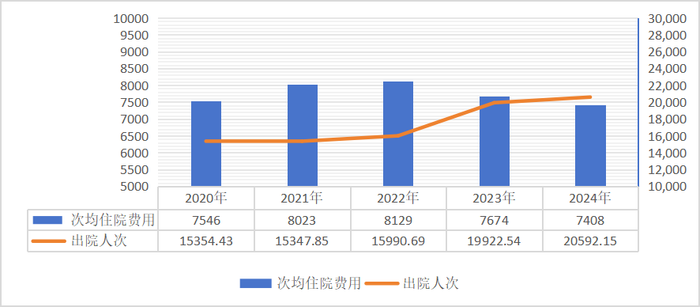 2020-2024年居民医保次均住院费用和出院人次