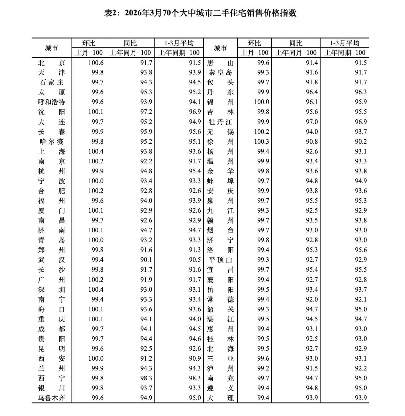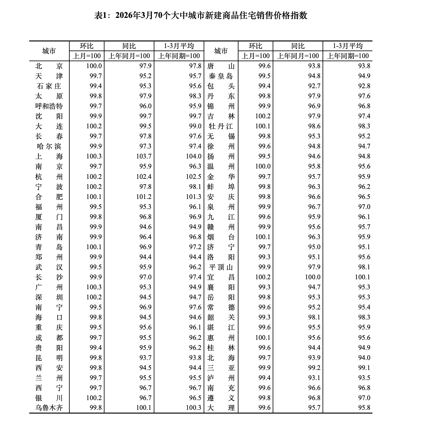 据国家统计局4月16日消息,2026年3月份,70个大中城市中,一线城市商品住宅销售价格环比上涨,二三线城市环比降幅收窄或相同。新建商品住宅和二手住宅销售价格环比上涨城市个数均比上月增加。