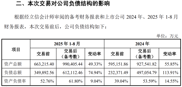 证券之星注意到,对于得邦照明而言,本次交易不仅消耗了其大量资金,还将推高自身资产负债率。据测算,此次交易完成后,得邦照明的资产负债率将出现上升,该指标将由交易前(2025年1-8月)的52.76%增至交易后的61.8%。