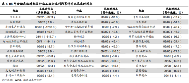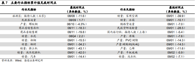 下面是主要行业指标见底的时间: