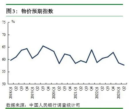 对下季度,物价预期指数为57.7%,比上季下降0.9个百分点。其中,23.1%的居民预期下季物价将“上升”,54.8%的居民预期“基本不变”,9.7%的居民预期“下降”,12.4%的居民“看不准”。